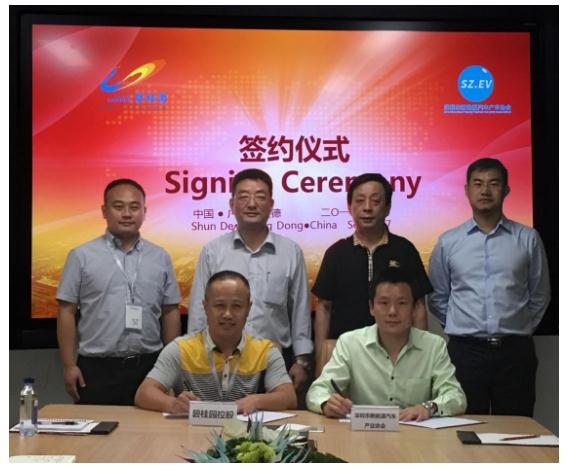 签约仪式在碧桂园集团总部举行,深圳新能源汽车产业协会刘华执行副会长、江世勇博士出席仪式,碧桂园方面出席仪式的有集团副总裁兼产城融合中心总经理刘宁、产城融合中心产业促进部副总经理姚乃龙等。