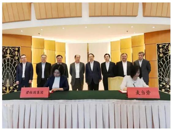 9月22日,碧桂园集团与麦当劳(中国)有限公司签署长期战略合作协议。根据协议,碧桂园将在社区内为麦当劳优先提供选址,进一步优化升级社区商业配套和服务,麦当劳则希望借力碧桂园丰富的社区资源,加快三、四线城市及新型城镇的快速布局。